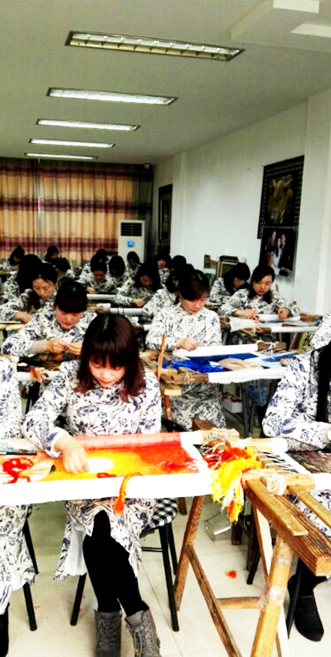 玉玲湘繡 旗下六個生產基地,湘繡工藝師三百余人,龐大的生產研發隊伍,技術力量雄厚。訂購熱線:139 7588 5812